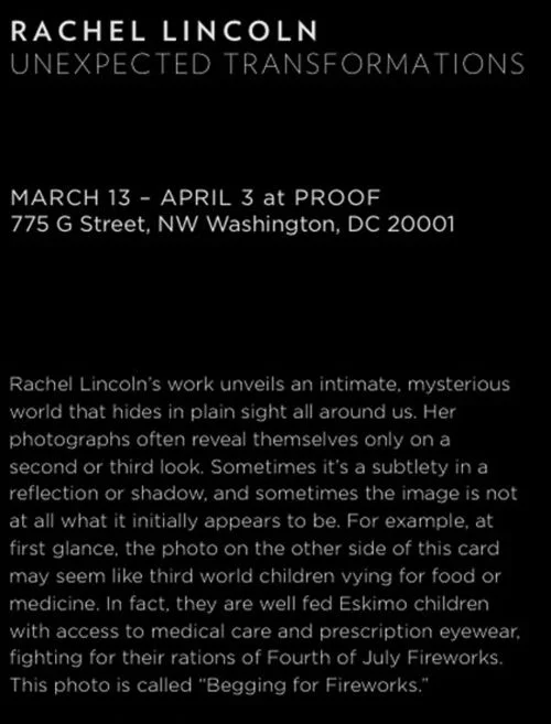 Juried by Damon King of #ACreativeDC and Susana Raab of Women Photojournalists of Washington